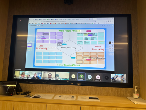 Recently, I co-facilitated an meeting to discuss the shaping of AI Policy and Guidelines hosted at German European School Singapore. My edtech counterparts at GESS, Jan and Iulius, and I had connected at a conference back in October and recognized a shared need to explore the practicalities of this rapidly evolving landscape. What started as a planned small meeting for just a couple of schools rapidly grew. The overwhelming response to a few invitations brought together 35 edtech and curriculum leaders from Taipei to Morocco to Puerto Rico. The photo is our Gripe Jam; it reveals the mounting issues around AI that our schools are grappling with.